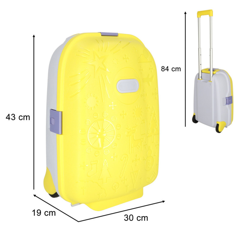 Vlastní kufr je ideální pro každého malého cestovatele připraveného na nová dobrodružství! Žlutá barva a zajímavé vzory upoutají pozornost vašeho dítěte a možná ho i povzbudí, aby si sbalilo svůj vlastní. Součástí sady jsou také samolepky na podepsání zavazadla.