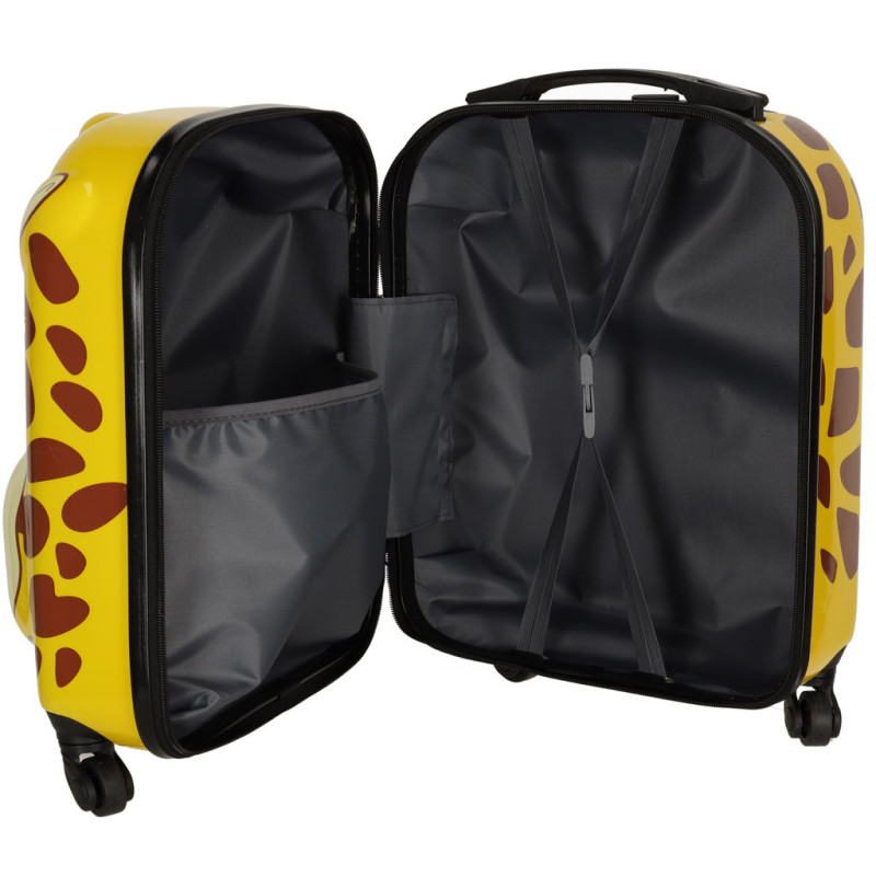 Dětský cestovní kufr s grafikou žirafy bude dokonalým společníkem pro vaše malé dítě na každé dobrodružné cestě. Kufr snadno pojme nejen oblečení na několik dní, ale také oblíbené hračky vašeho dítěte, a to díky dvěma přihrádkám - jedné s kapsou a druhé s bezpečnostními popruhy. Dítě nebude mít problémy s vedením zavazadla, protože je vybaveno čtyřmi kolečky a teleskopickou rukojetí.