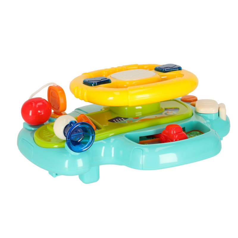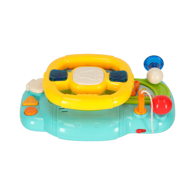 Žltý volant umožňuje ovládať červené autíčko umiestnené na palubnej doske. Dieťa si tak môže užívať ilúziu skutočnej jazdy. Ozývajú sa reálne zvuky motora, smeroviek či trúby, ktoré sú doplnené o svietiace smerovky.