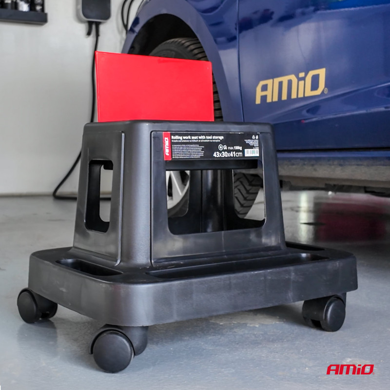 Dílenská stolička na kolečkách s úložným prostorem na nářadí 150 kg AMiO-04269