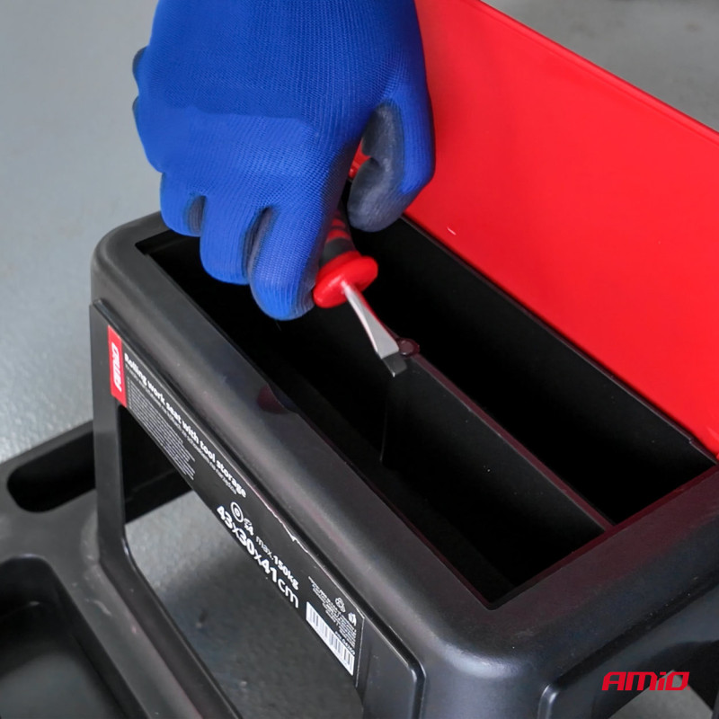 Dílenská stolička na kolečkách s úložným prostorem na nářadí 150 kg AMiO-04268 je praktický a stabilní pomocník do dílny, garáže nebo domácnosti. Je vhodná pro dosažení vyšších poloh při práci i jako stolička při přestávkách.