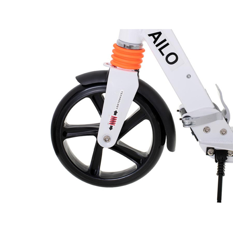 Skládací městský skútr AILO je ideálním řešením pro jízdu po městě – ať už do školy, do práce nebo na volnočasové výlety. Díky pevné konstrukci, velkým kolečkům a tlumičům zvládne i nerovné chodníky, přičemž jízda zůstává pohodlná a bezpečná.