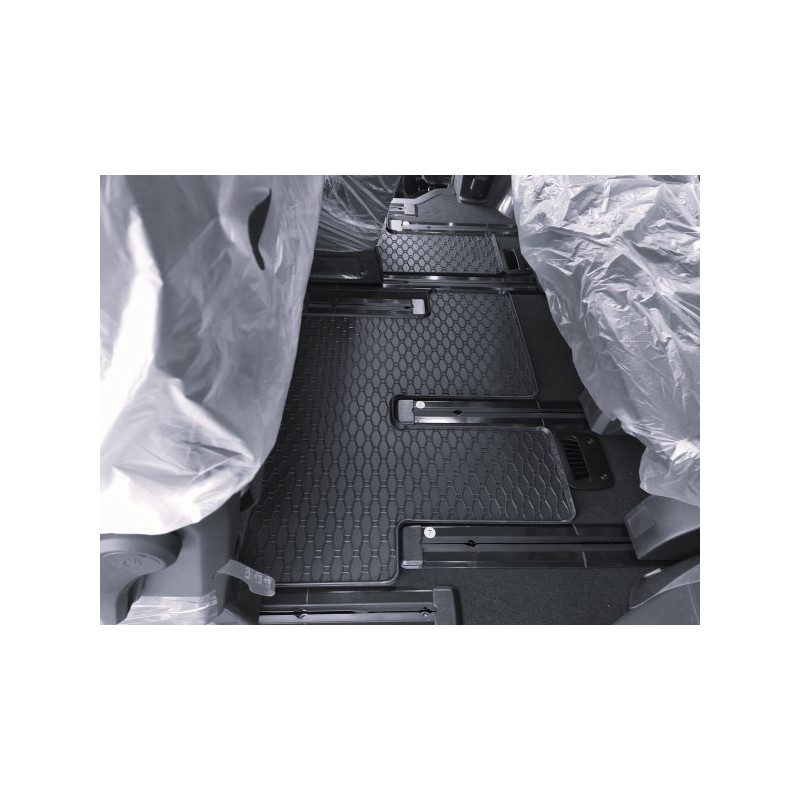 Gumené rohože na mieru pre HYUNDAI HYUNDAI Staria 2.+ 3. rada 9m (2022->). Rohože sú vyrobené presne na mieru interiéru daného vozidla. Lacnejšia náhrada originálnych rohoží.