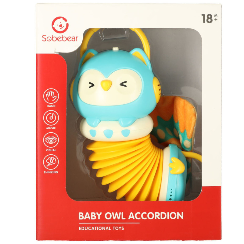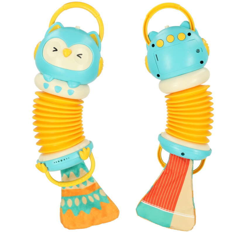Harmonie akordeon pro děti oranžová sova hrající LED 30cm
