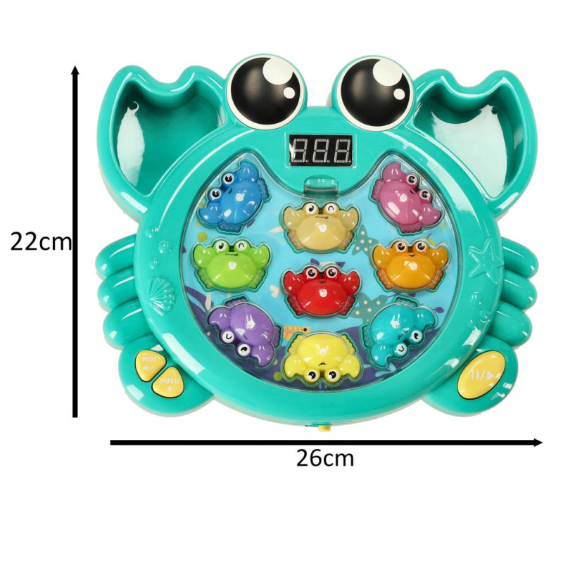 Na výběr jsou dvě hry: zatloukání krabů kladívkem a jejich chytání rybářským prutem. Obě aktivity podporují rozvoj manuálních dovedností, jemné motoriky a koordinace ruka-oko, které jsou v raném věku klíčové. Díky těmto činnostem si dítě procvičuje přesné pohyby a zdokonaluje své schopnosti.