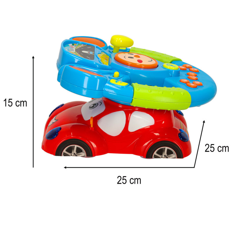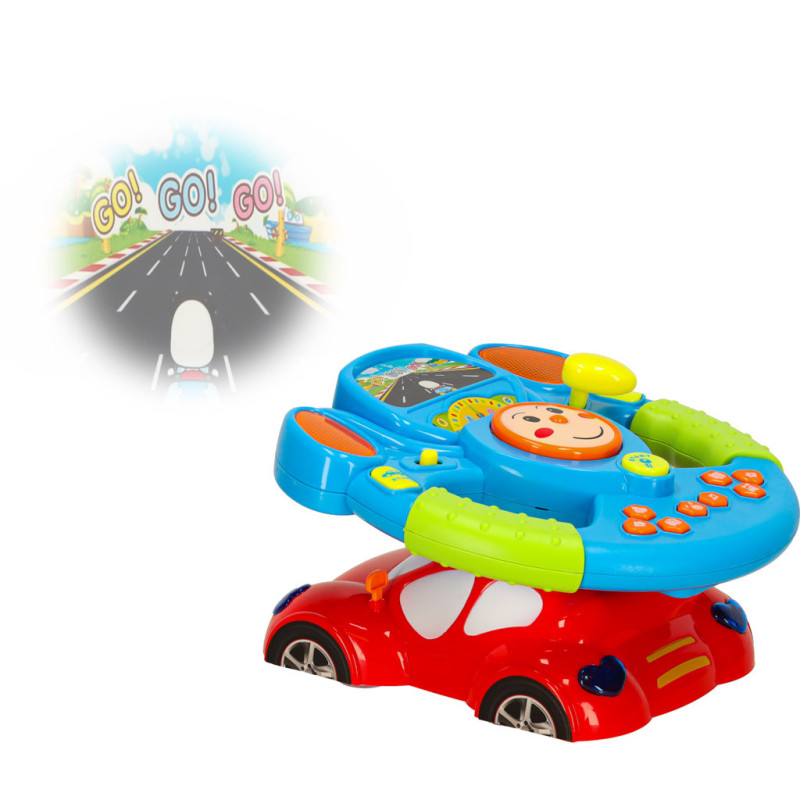 Volant je umístěn na červeném autíčku s vestavěným projektorem, který promítá obrázek silnice. Díky tomu hra dokonale stimuluje dětskou představivost a dodává pocit skutečné jízdy.