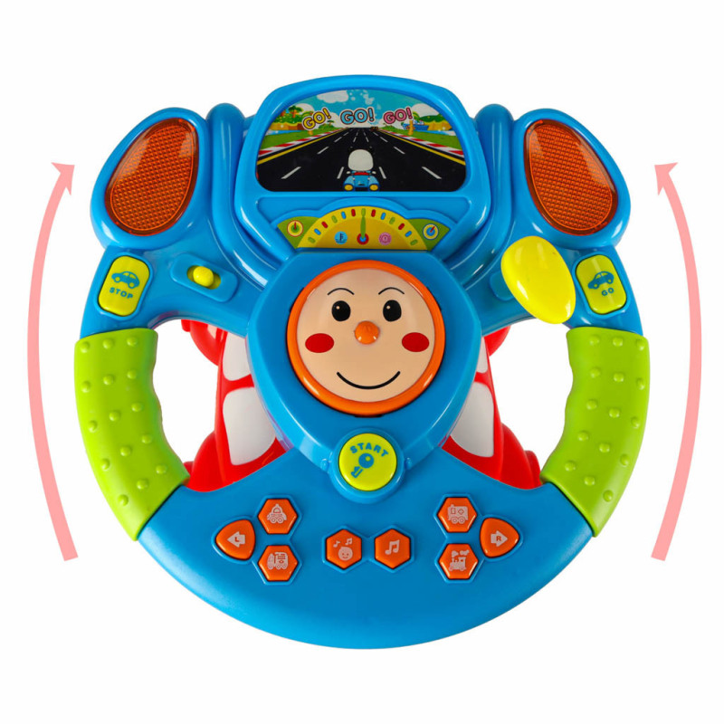 Dětský interaktivní volant nabízí malým řidičům bohaté zvukové a světelné efekty, které zpříjemní každou hru. Každé tlačítko přehrává realistické zvuky, jako jsou sirény sanitky a policie, zvuk vlaku, kamionu, řazení převodů nebo brzdění.