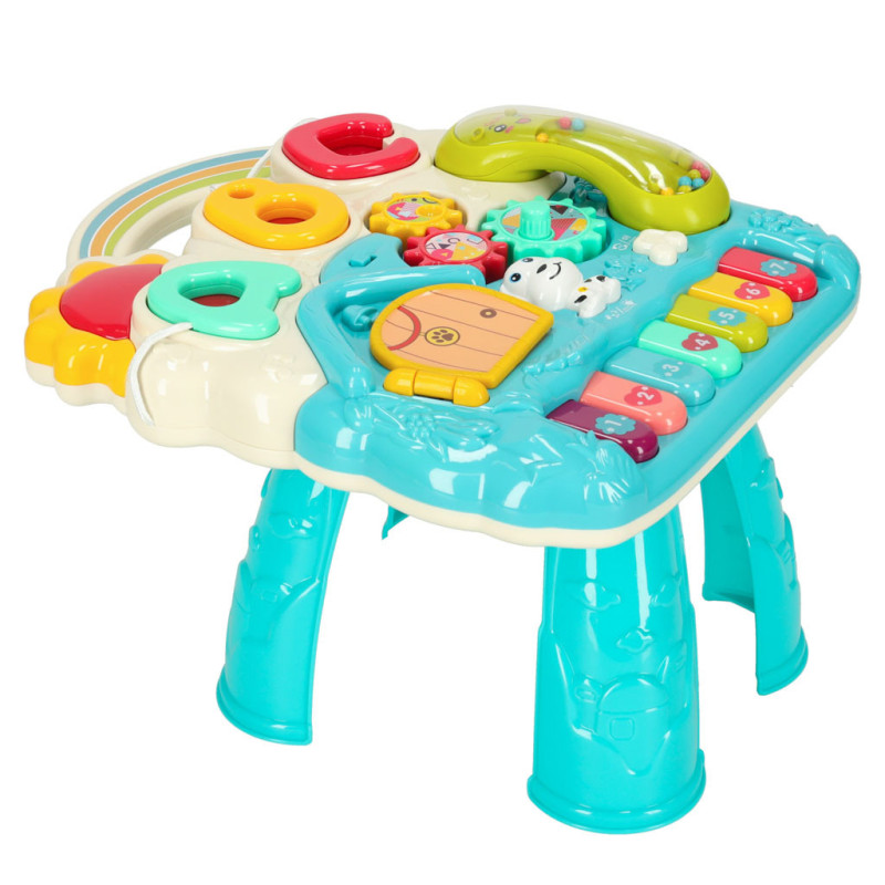 Interaktivní stůl 4v1 v modré barvě je ideální volbou pro všechny zvídavé batolata. Zajišťuje vzdělávání, zábavu a aktivní pohyb v jednom produktu. Rodiče ocení jeho praktičnost, děti zase rozmanitost funkcí a hravé zpracování.
