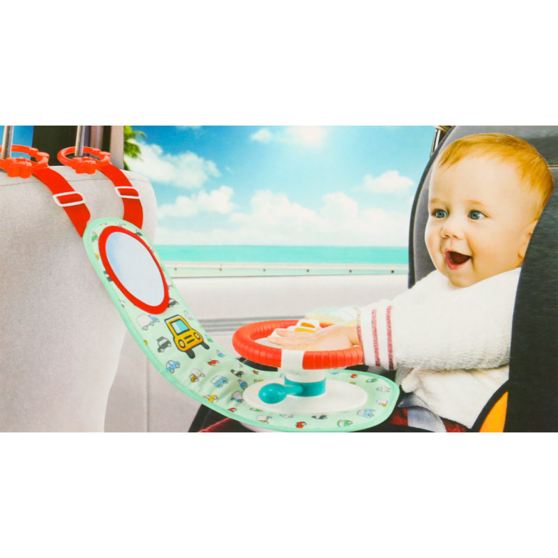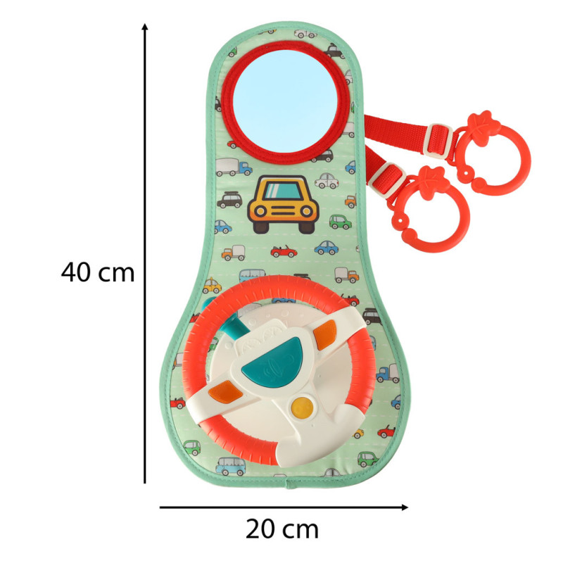 INTERAKTIVNÍ VOLANT PRO AUTA SE ZVUKEM je ideální řešení pro uklidnění a zabavení dítěte během jízdy autem. Volant je připevněn na měkké podložce s motivem autíček a umožňuje dítěti bezpečně napodobovat rodiče za volantem.