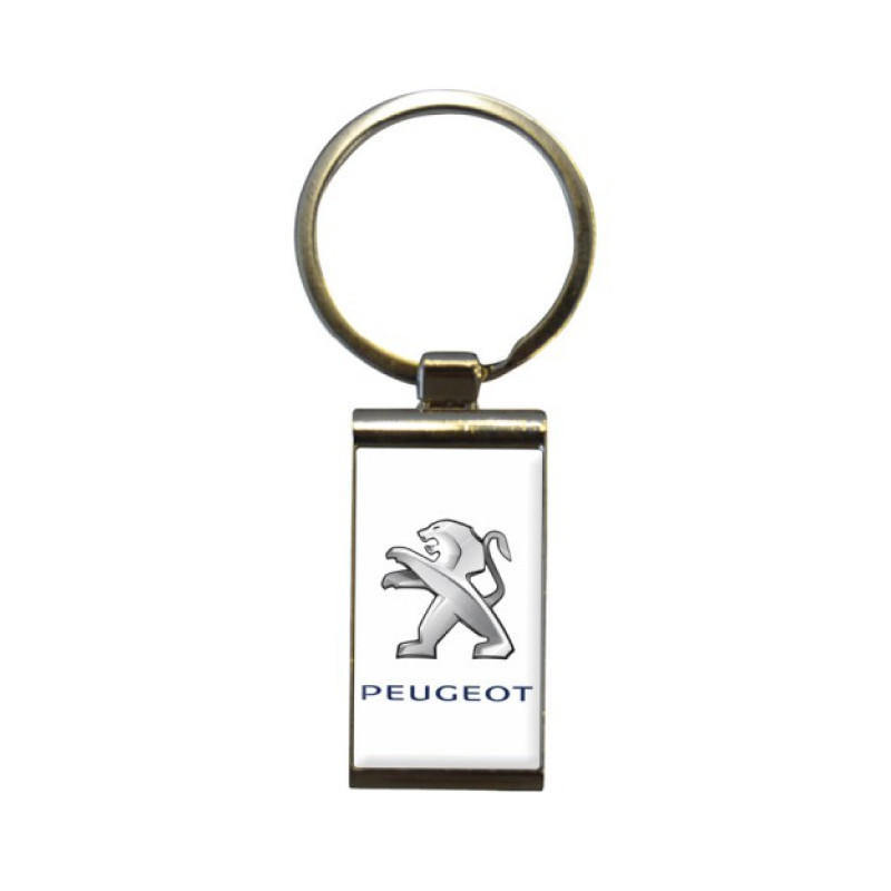 Kovová klíčenka s pryskyřičnou nálepkou s logem auta.