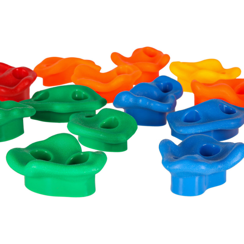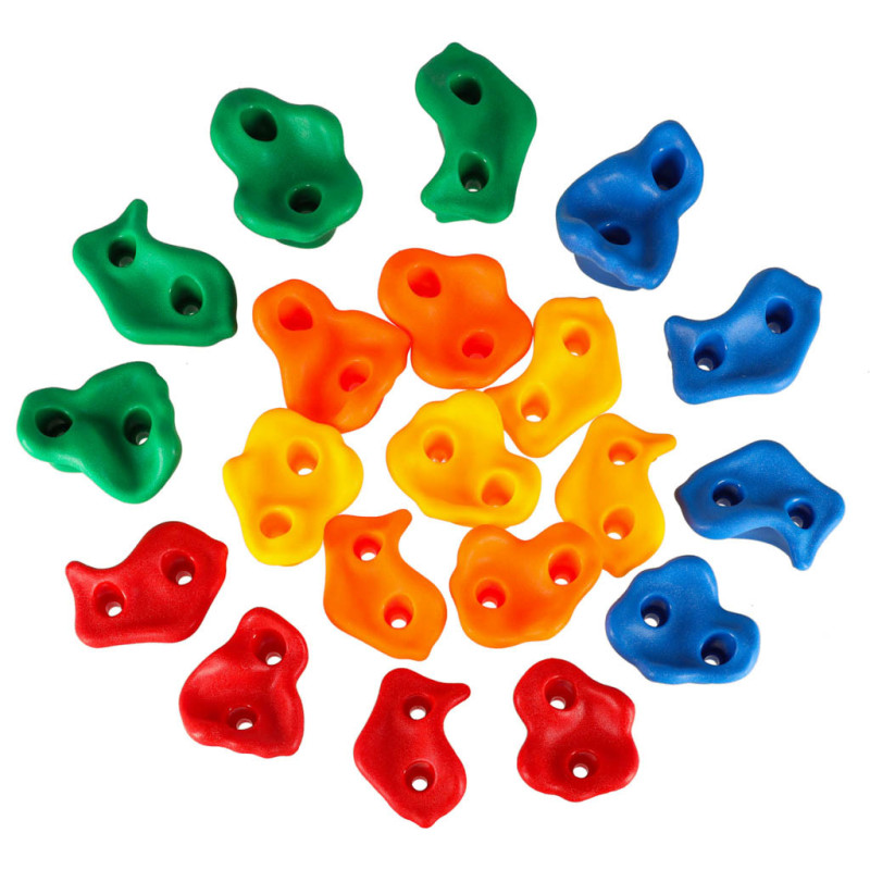 Sada obsahuje až 20 různých lezeckých kamenů, což jsou speciální úchyty na lezení pro děti, které umožňují vytvořit lezeckou trasu podle úrovně vašeho dítěte. Tvary a barvy byly navrženy s ohledem na nejmenší – každý chyt je dobře tvarovaný a bezpečný pro ruce a nohy.