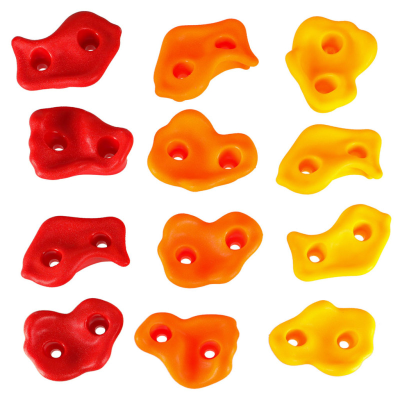 Lezecké kameny dostupné v sadě jsou vyrobené z odolného PE plastu, který zaručuje odolnost proti poškození a proměnlivým povětrnostním podmínkám. Déšť, sníh, teplo – lezecké kameny si zachovají své vlastnosti a vzhled po mnoho let.