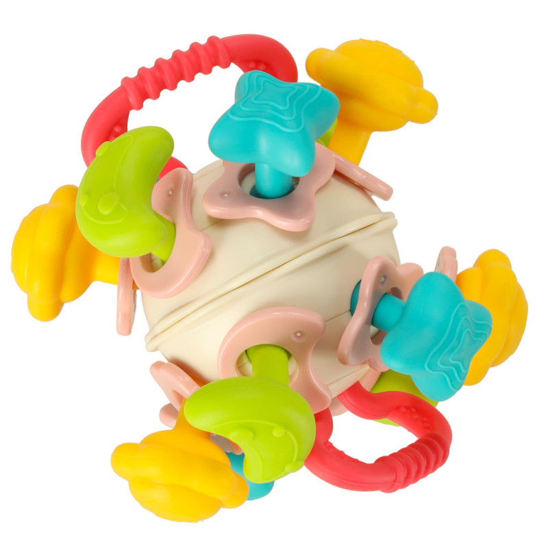 Silikonové části přinášejí nejen zábavu, ale také úlevu při prořezávání zoubků. Tato hračka je ideální pomocník při rozvoji jemné motoriky a poznávání světa.