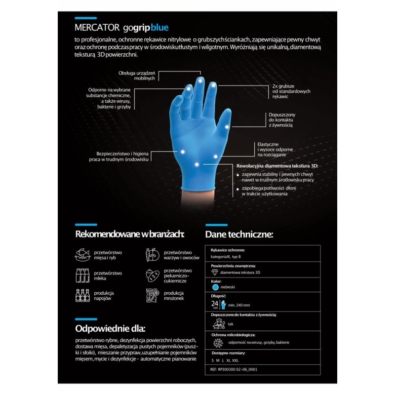 MERCATOR® gogrip černé nitrilové rukavice – velikost M představují špičkovou volbu pro ty, kteří požadují spolehlivou ochranu, vysoký výkon a komfort bez kompromisů.