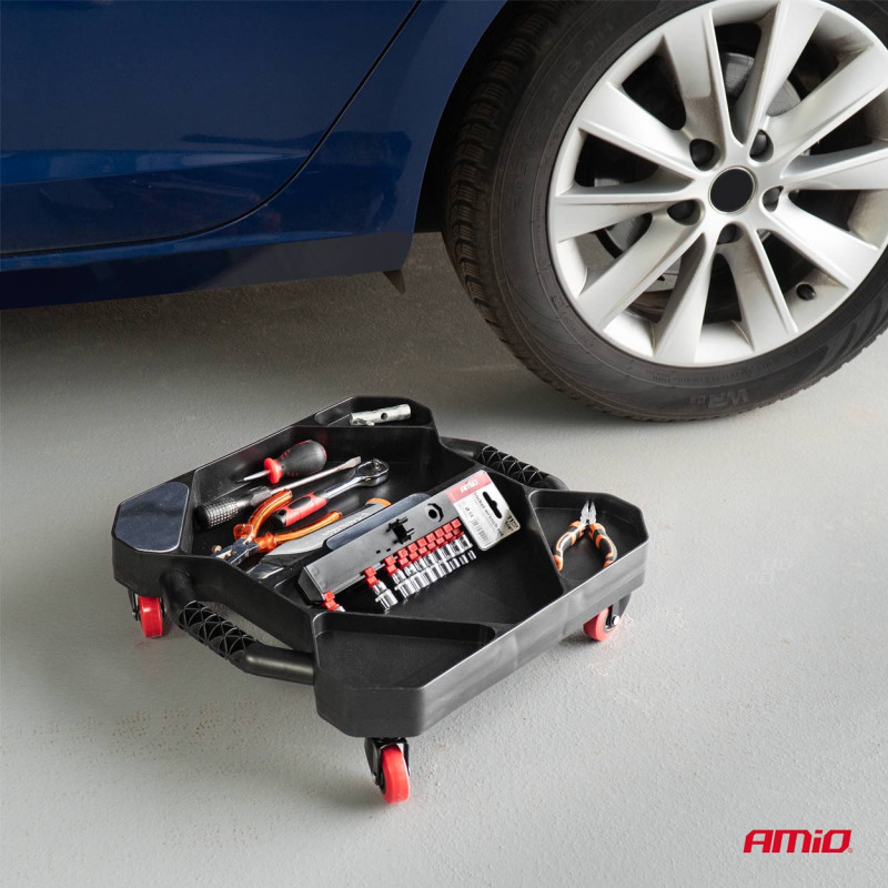 Organizér nářadí na kolečkách AMiO-04265 je praktický a mobilní pomocník pro každého mistra, mechanika nebo domácího kutila. Jeho robustní konstrukce z odolného plastu s vysokými okraji zabraňuje vypadávání nářadí a umožňuje efektivní uspořádání nářadí, jako jsou klíče, šroubováky a další příslušenství. Díky odolným kolečkům je snadno přenosný a ideální pro práci pod vozidlem, v autodílně nebo garáži.