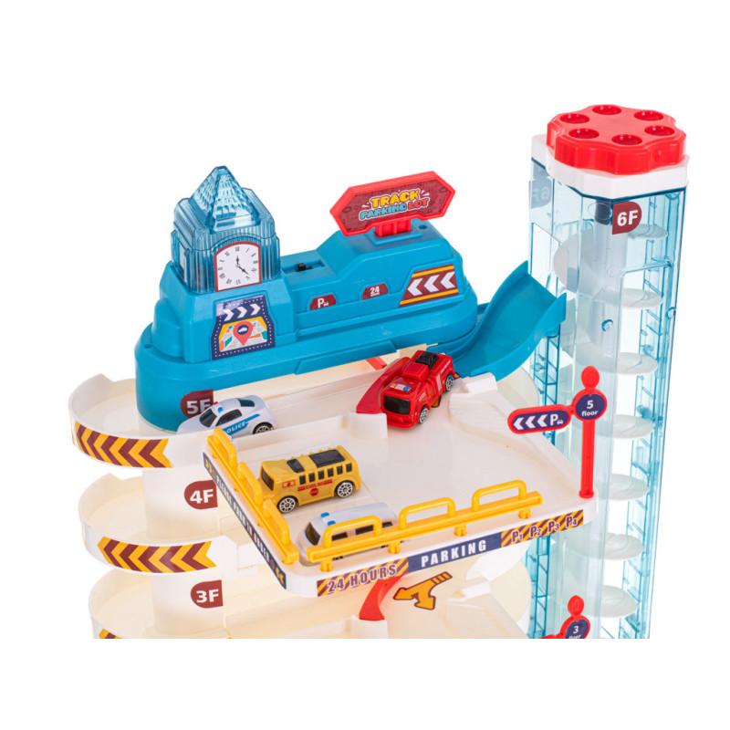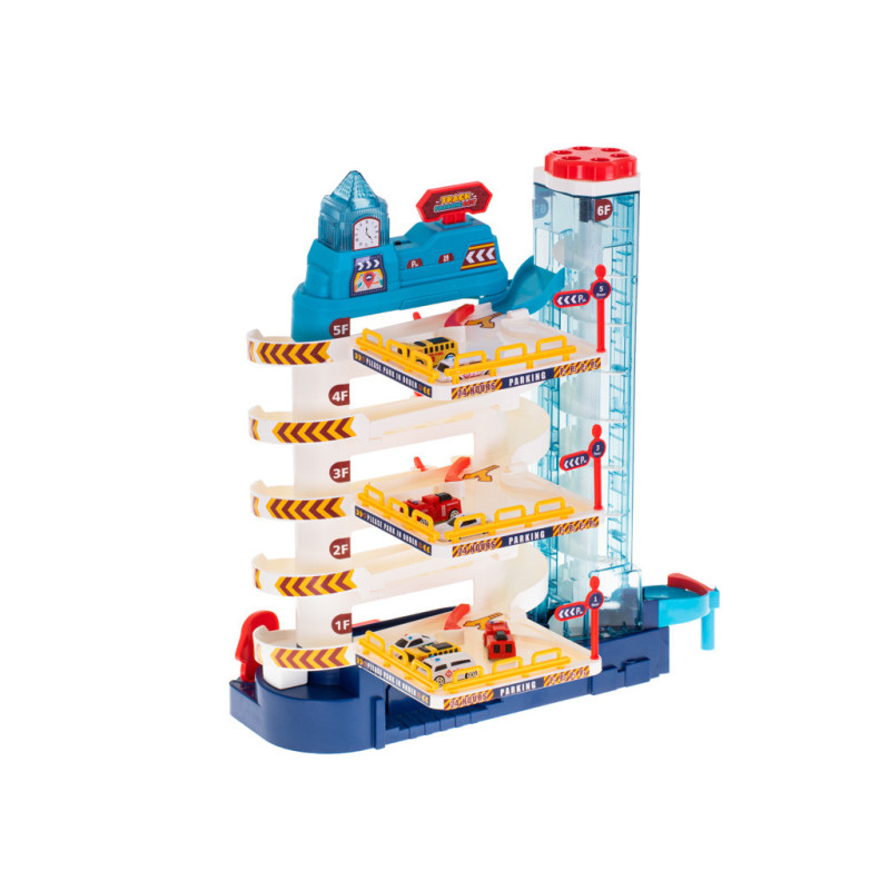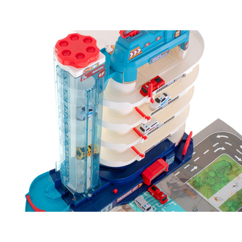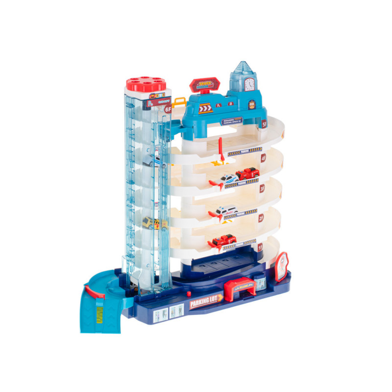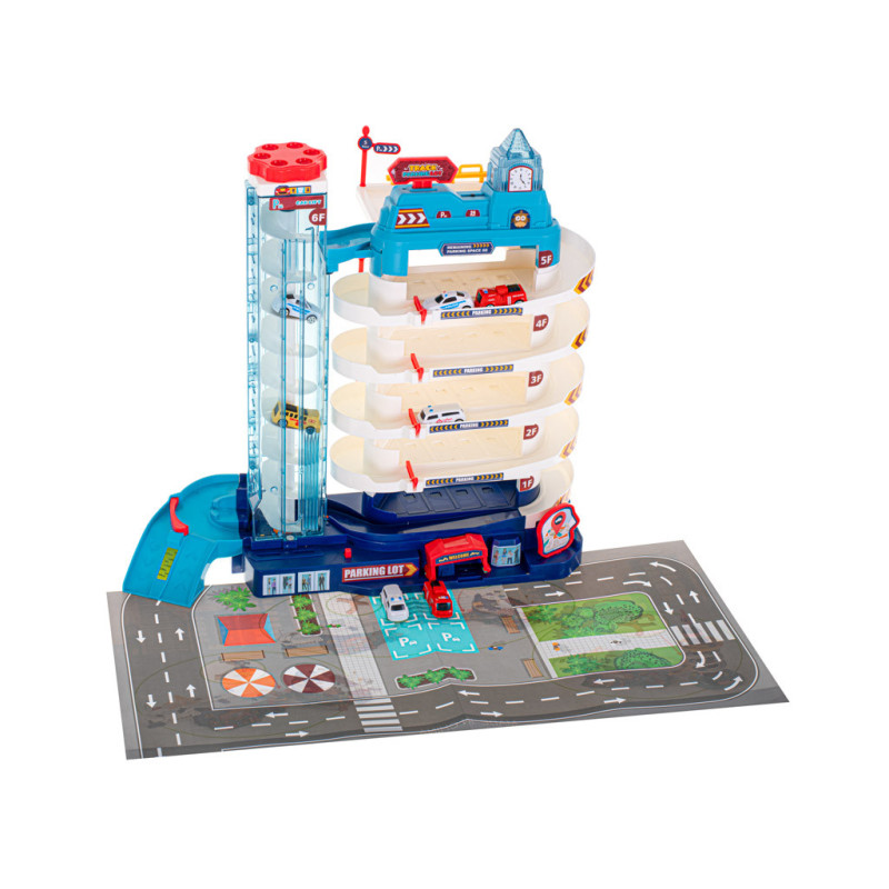 Garáž s 5 úrovněmi a elektrickým výtahem je perfektní hračkou pro všechny malé motoristické nadšence. Velké parkoviště, rušné město a 8 aut v sadě zajistí hodiny vzrušující zábavy!