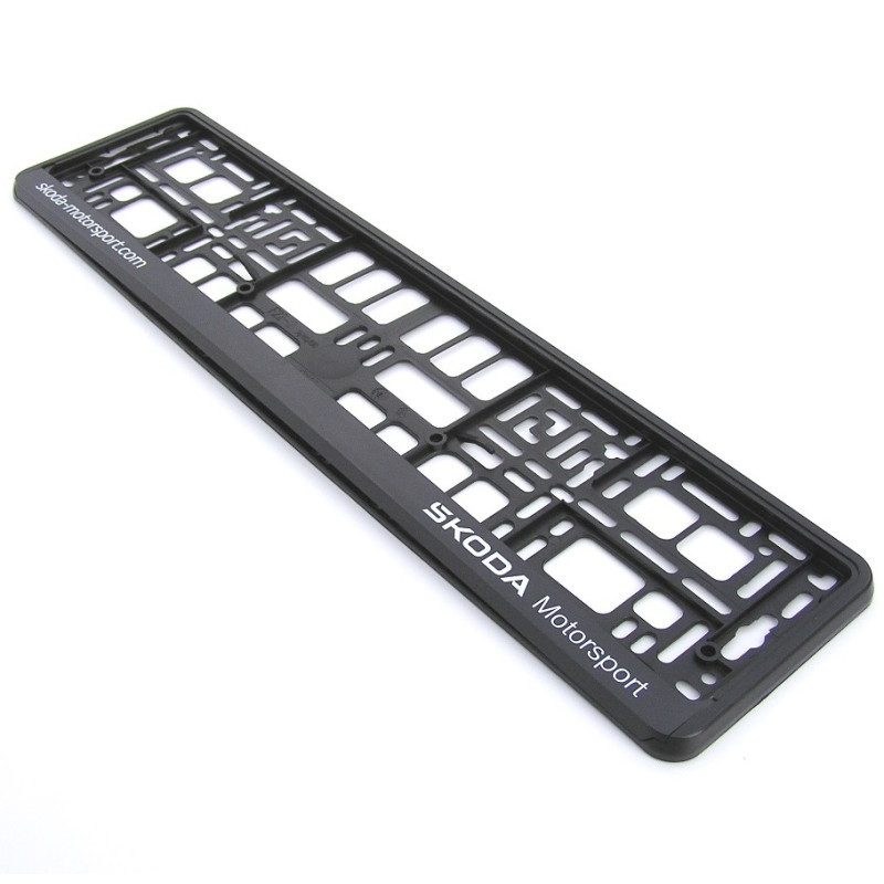 Podložka pod SPZ auta s nápisem ŠKODA. Vysoká flexibilita podznačky, kde ani při menších nárazech nedochází k prasknutí nebo ztrátě SPZ. Barva: černá s logem a nápisem.