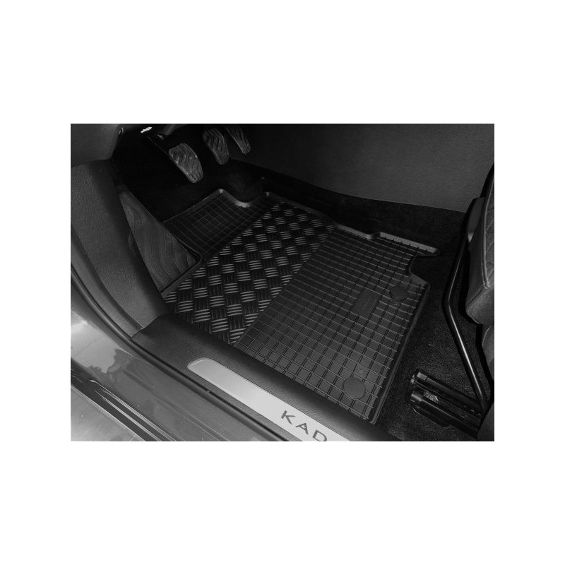Pryžové rohože na míru pro RENAULT Kadjar (2015->). Rohože jsou vyrobeny přesně na míru interiéru daného vozidla. Levnější náhrada originálních rohoží.