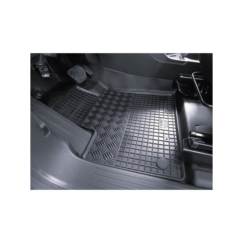Pryžové rohože na míru pro RENAULT Kangoo Van 2m E-TECH (2022->). Rohože jsou vyrobeny přesně na míru interiéru daného vozidla. Levnější náhrada originálních rohoží.