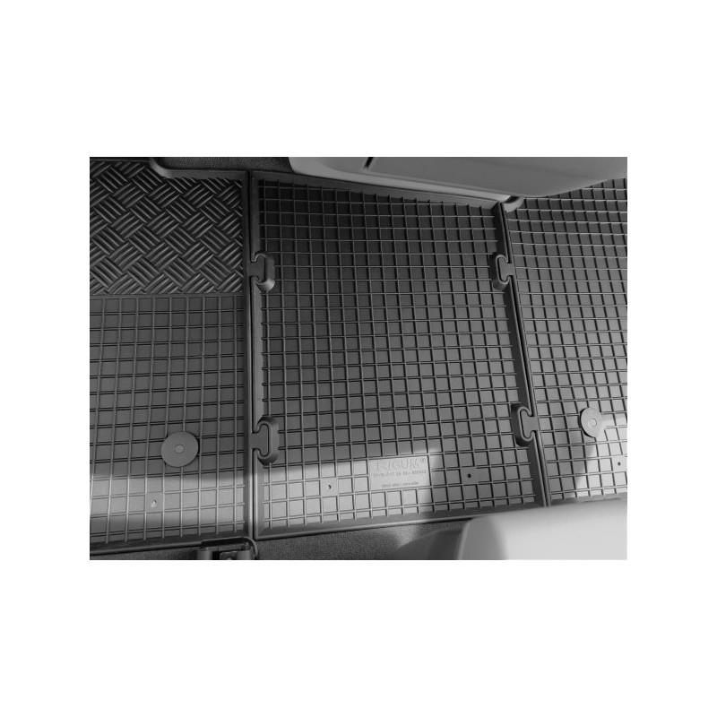 Pryžové rohože na míru pro VOLKSWAGEN T7 Multivan 2místné 1.řada (2022->). Rohože jsou vyrobeny přesně na míru interiéru daného vozidla. Levnější náhrada originálních rohoží.
