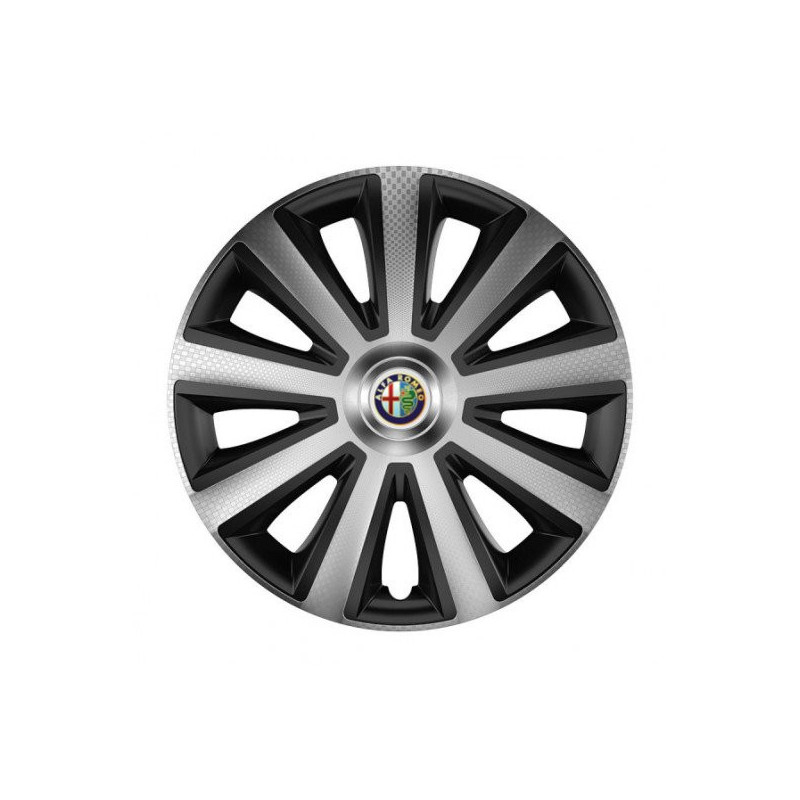 Poklice 14 Aviator carbon silver&black pro Alfa Romeo na ocelové disky. Pro kola o velikosti R14 s pryskyřičnými samolepkami Alfa Romeo.Příjemce :