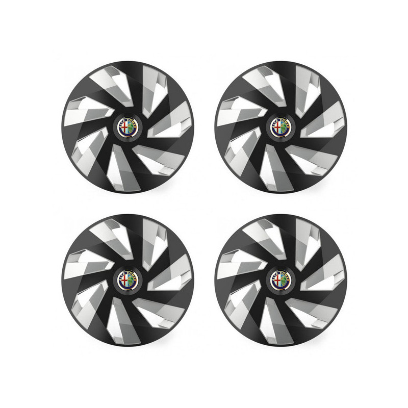 Poklice 14 Vector RC black and silver pro Alfa Romeo na ocelové disky. Pro kola o velikosti R14 s pryskyřičnými samolepkami Alfa Romeo.Příjemce :