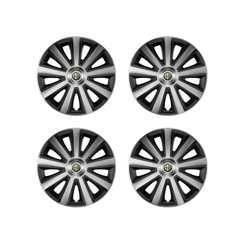 Poklice 15 Aviator carbon silver&black pro Alfa Romeo na ocelové disky. Pro kola o velikosti R15 s pryskyřičnými samolepkami Alfa Romeo.Příjemce :