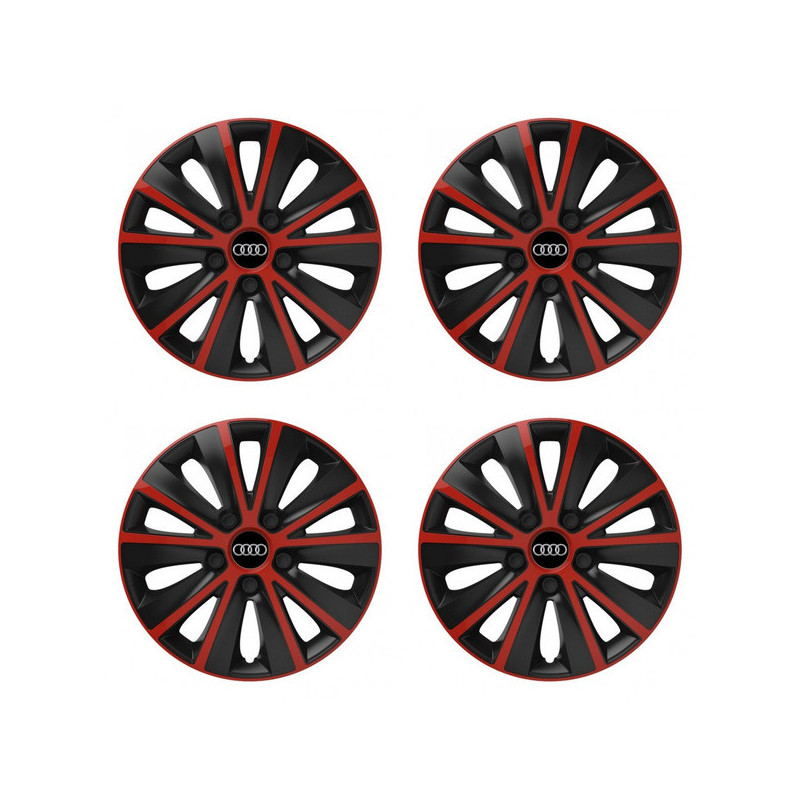 Poklice 15 RAPIDE red and black pro Audi na ocelové disky. Pro kola o velikosti R15 s pryskyřičnými samolepkami Audi.Příjemce :