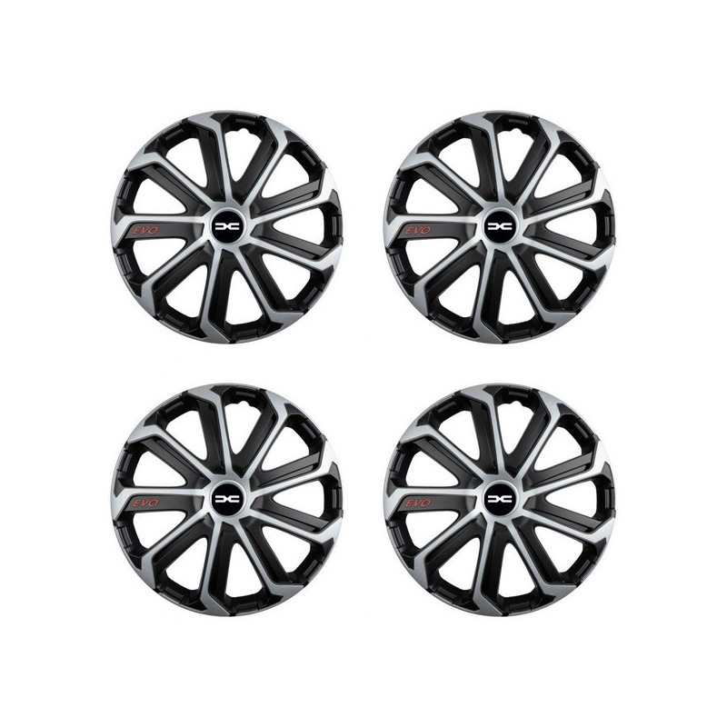 Poklice 15 Evo black&silver pro Dacia (nové logo) na ocelové disky. Pro kola o velikosti R15 s pryskyřičnými samolepkami Dacia (nové logo).Příjemce :