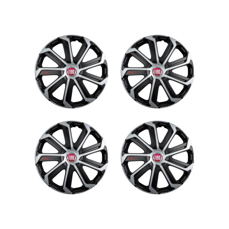 Poklice pro Fiat (červené) 15 Evo black&silver