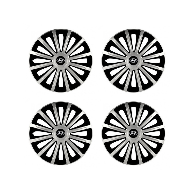 Poklice 16 TREND silver and black pro Hyundai na ocelové disky. Pro kola o velikosti R16 s pryskyřičnými samolepkami Hyundai.Příjemce :