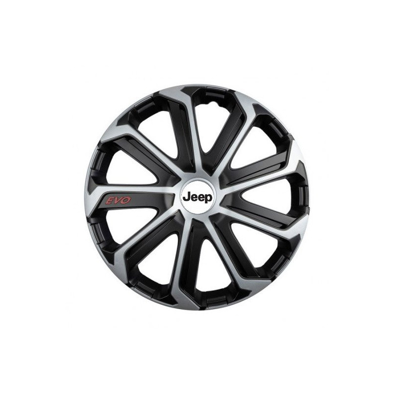 Poklice 14 Evo black&silver pro Jeep na ocelové disky. Pro kola o velikosti R14 s pryskyřičnými samolepkami Jeep.Příjemce :