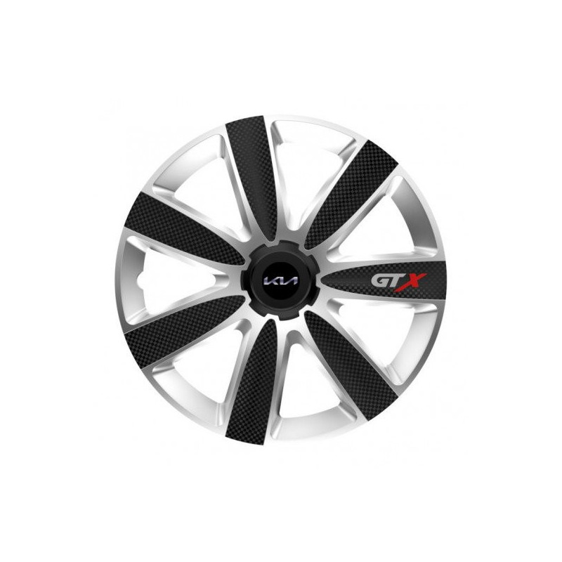 Poklice 16 GTX CARBON silver/black pro Kia (nové logo) na ocelové disky. Pro kola o velikosti R16 s pryskyřičnými samolepkami Kia (nové logo).Příjemce :