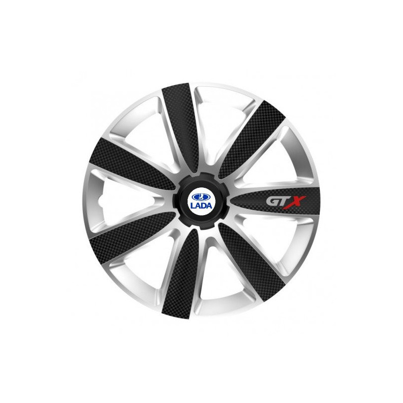Poklice 15 GTX CARBON silver/black pro Lada na ocelové disky. Pro kola o velikosti R15 s pryskyřičnými samolepkami Lada.Příjemce :