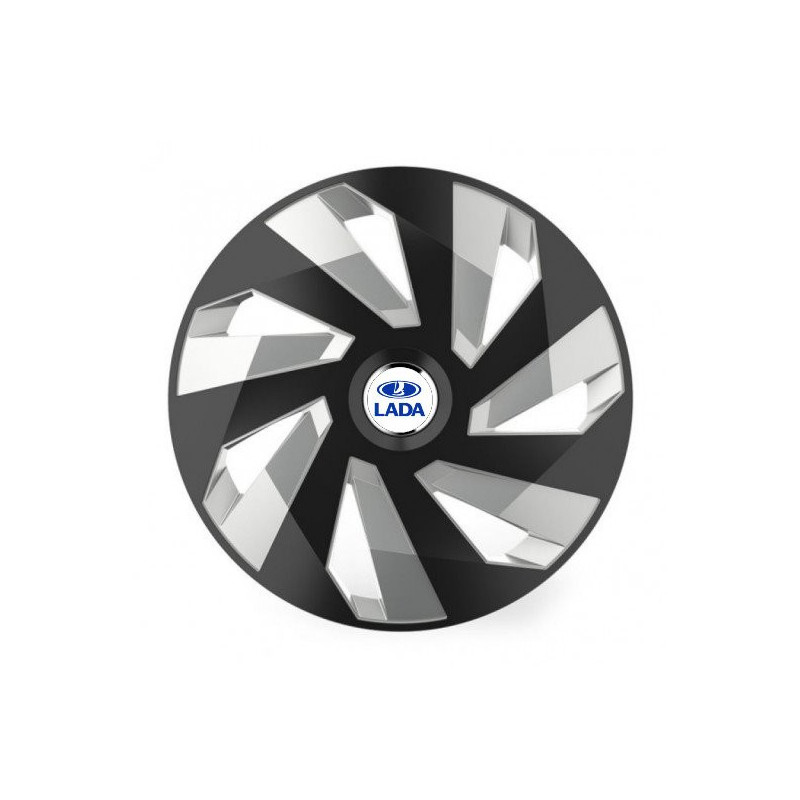 Poklice 15 Vector RC black and silver pro Lada na ocelové disky. Pro kola o velikosti R15 s pryskyřičnými samolepkami Lada.Příjemce :