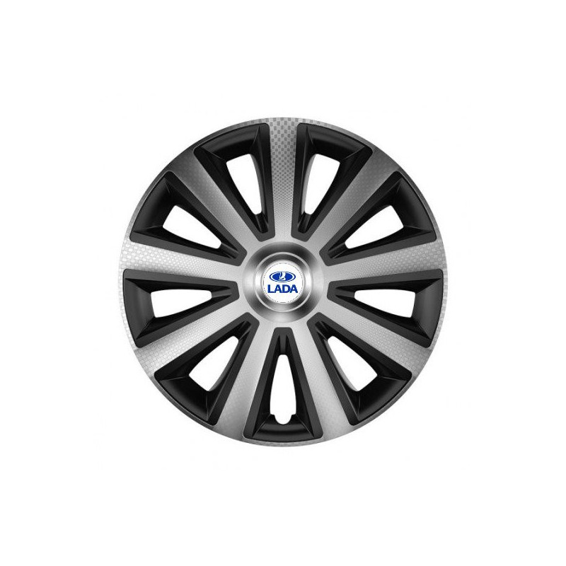 Poklice 16 Aviator carbon silver&black pro Lada na ocelové disky. Pro kola o velikosti R16 s pryskyřičnými samolepkami Lada.Příjemce :