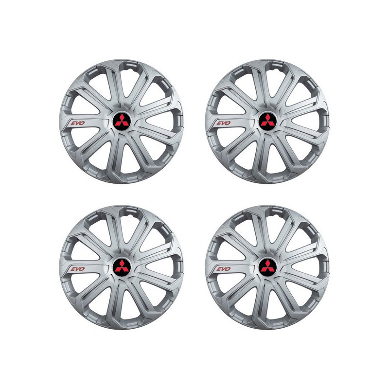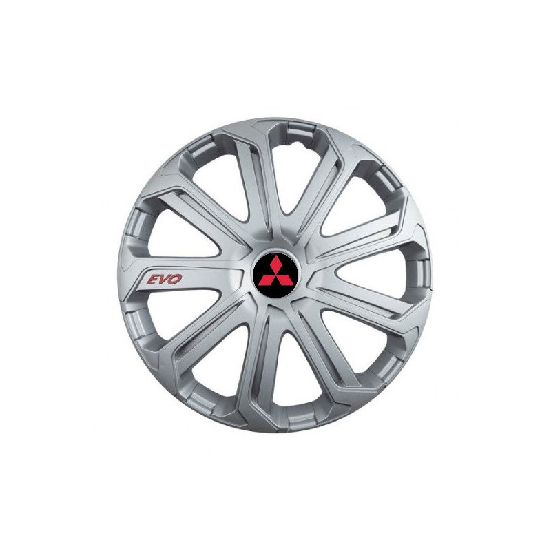 Poklice 15 Evo silver pro Mitsubishi (červené) na ocelové disky. Pro kola o velikosti R15 s pryskyřičnými samolepkami Mitsubishi (červené).Příjemce :