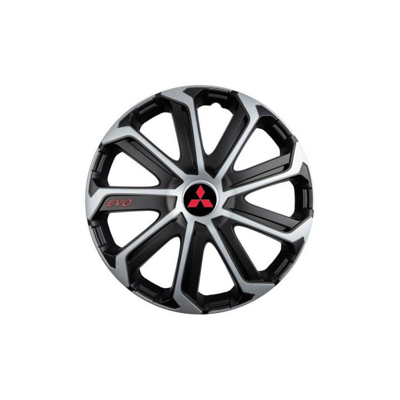Poklice 16 Evo black&silver pro Mitsubishi (červené) na ocelové disky. Pro kola o velikosti R16 s pryskyřičnými samolepkami Mitsubishi (červené).Příjemce :