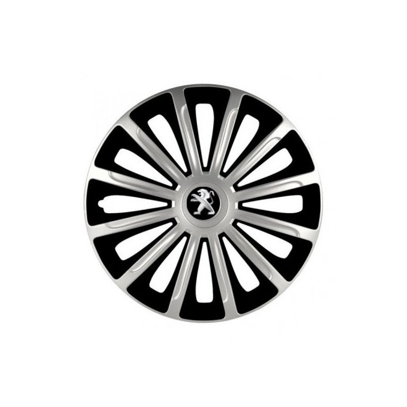 Poklice 15 TREND silver and black pro Peugeot (staršie logo) na ocelové disky. Pro kola o velikosti R15 s pryskyřičnými samolepkami Peugeot (staršie logo).Příjemce :