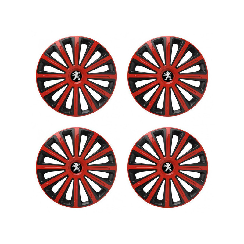 Poklice 16 TREND red and black pro Peugeot (staršie logo) na ocelové disky. Pro kola o velikosti R16 s pryskyřičnými samolepkami Peugeot (staršie logo).Příjemce :