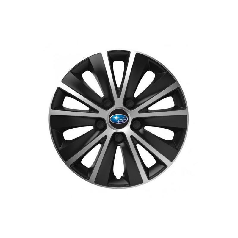 Poklice 15 RAPIDE silver and black pro Subaru na ocelové disky. Pro kola o velikosti R15 s pryskyřičnými samolepkami Subaru.Příjemce :