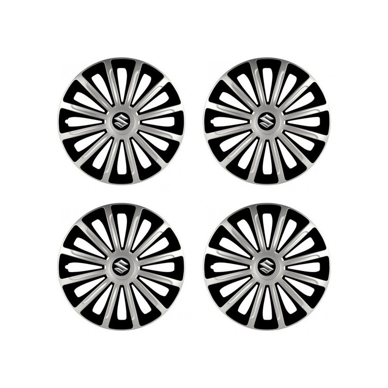 Poklice 15 TREND silver and black pro Suzuki na ocelové disky. Pro kola o velikosti R15 s pryskyřičnými samolepkami Suzuki.Příjemce :