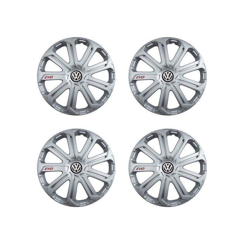 Poklice 16 Evo silver pro VW (černé) na ocelové disky. Pro kola o velikosti R16 s pryskyřičnými samolepkami VW (černé).Příjemce :