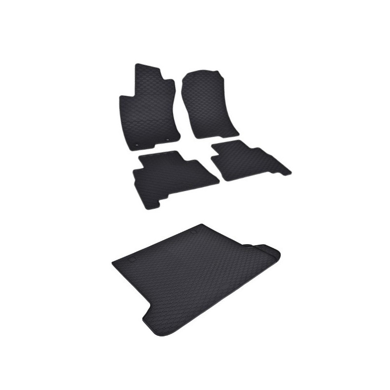 Táto sada obsahuje gumovú vaničku na mieru do kufra a gumové rohože na mieru pre vozidlo Toyota TOYOTA Land Cruiser 150 5m 2018-. Ide o praktické a odolné riešenie na ochranu interiéru Vášho vozidla pred nečistotami, vlhkosťou a opotrebením.