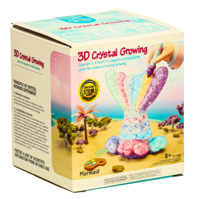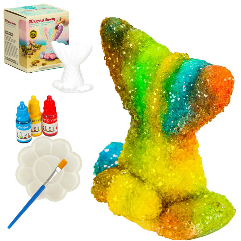 Tato zábavná a naučná sada je určena pro malé nadšence chemie. Umožňuje vypěstovat vlastní krystaly přímo na sádrovém odlitku ve tvaru mořské panny.