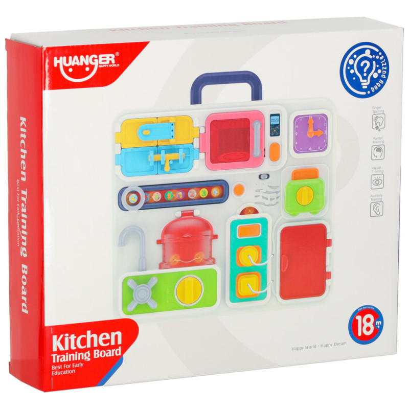 Interaktivní manipulační tabule ve tvaru kufříku je dokonalá hračka, která zábavně a bezpečně rozvíjí motoriku, logické myšlení a samostatnost dítěte.