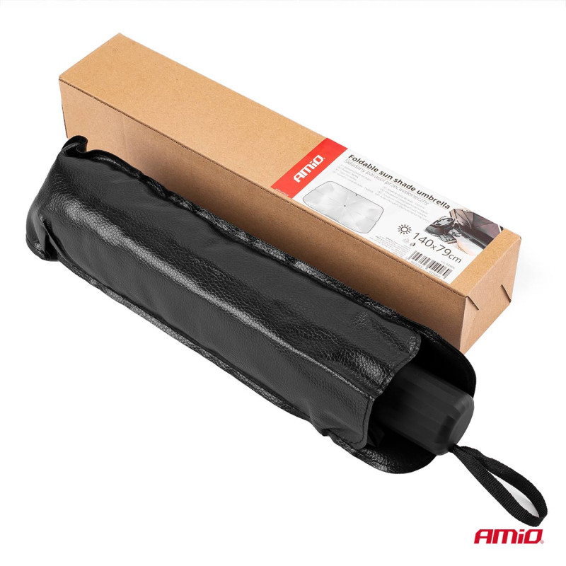 AMiO Sluneční clona do auta – Deštník (140×79 cm) je skladná a efektivní ochrana proti UV záření a přehřívání interiéru vozidla. Díky designu ve tvaru deštníku se snadno rozkládá a zabere minimum místa po použití.