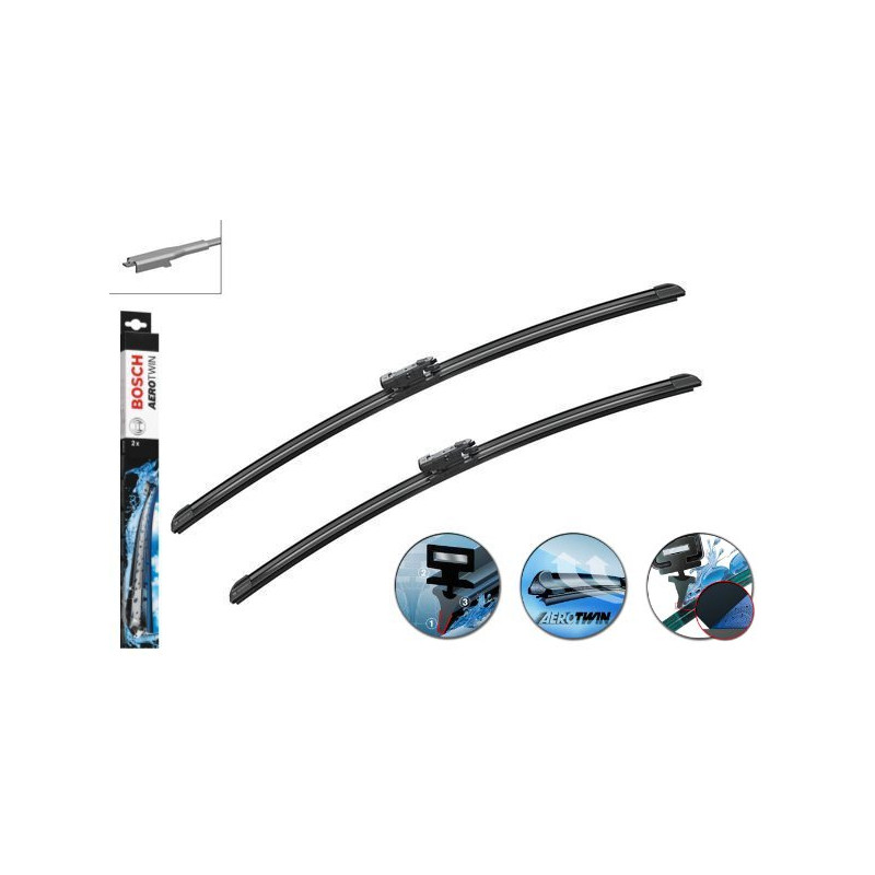 Model stěračů speciálně určený pro tento vůz. Stěrače AeroTwin s plochou lištou jsou bezramínkové stěrače s aerodynamickým tvarem. Díky rovnoměrné síle přítlaku v celé délce stírací lišty se snižuje opotřebení a zvyšuje se doba životnosti.
