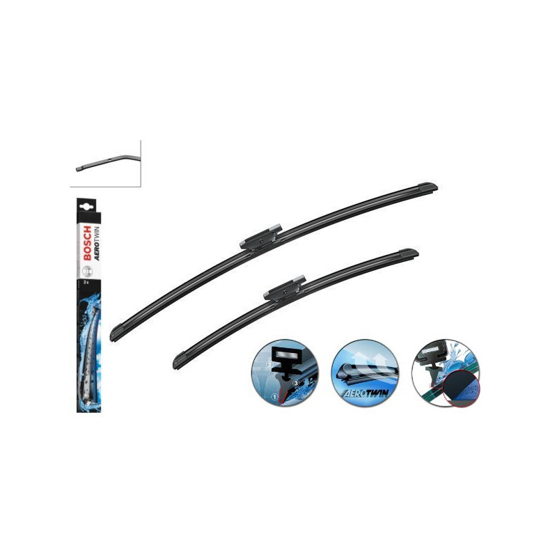 Model stěračů speciálně určený pro tento vůz. Stěrače AeroTwin s plochou lištou jsou bezramínkové stěrače s aerodynamickým tvarem. Díky rovnoměrné síle přítlaku v celé délce stírací lišty se snižuje opotřebení a zvyšuje se doba životnosti.