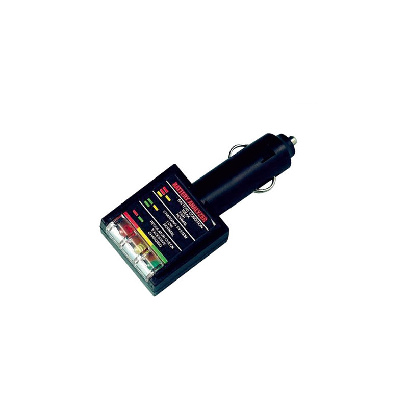Pre rýchlu diagnostiku elektrického systému batérie , alternátora a stavu napätia v systéme. Stačí len vložiť koncovku testera do cigaretového zapaľovača a podľa stavu lediek skotnrolovať systém. Pre kontrolu batérie musí byť motor vypnutý. Pri vypnutom motore zažnite stretávacie svetlá a nechajte svietiť po dobu 1 minúty. Potom skontrolujte stav batérie prostredníctvom testera : Červená : vybitá Červeno-žltá : slabo nabitá Žltá : normálne nabitá Kontrola napájacieho systému batérie - použite vozidlo po dobu aspoň 15 minút, potom pri naštartovanom motore skontrolujte tester : Žltá - zelená : slabé napájanie Zelená : normálne napájanie Červená-zelená : presilené napájanie